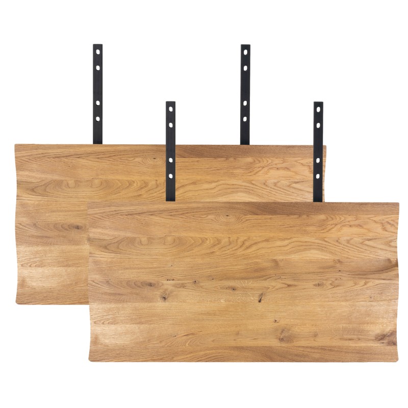 Sæt med to tillægsplader i olieret eg med bølget kant. Stål, eg