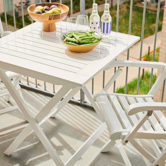 Bordet er smart og praktisk og passer perfekt til en mindre terrasse eller balkon.