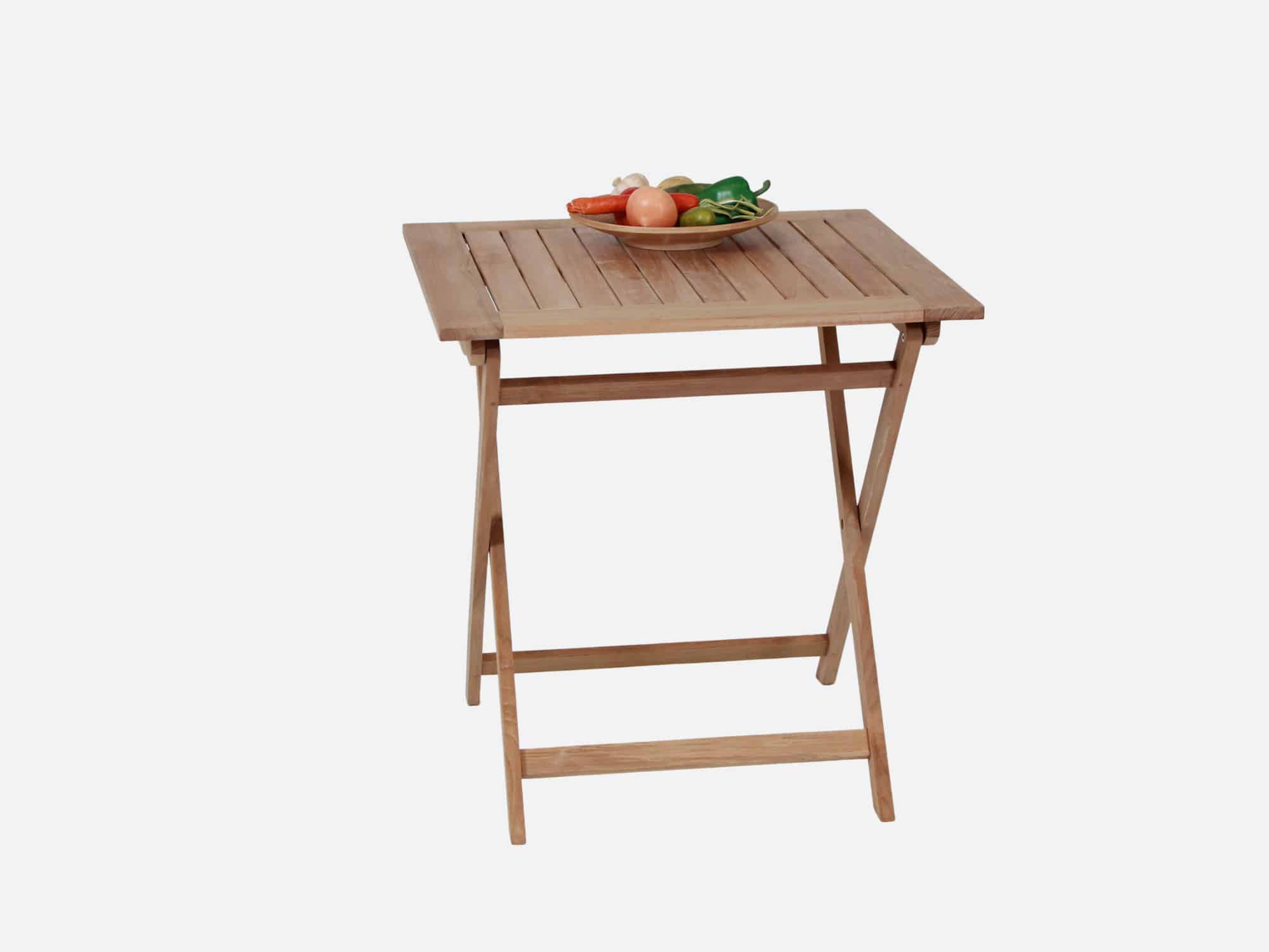 Elegant og klassisk havebord 70×70 cm udført i massiv A-grade kerne teak. Smart model med foldeben.
