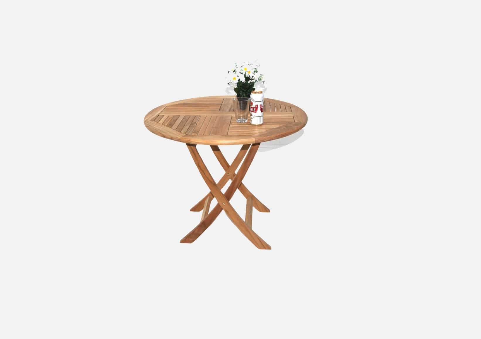 Havebord 90 cm Ø Teak Luksus Herreford et et klassisk havebord 90 cm udført i kraftig massiv A-grade kerne teak. Smart model med foldeben.