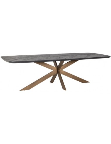 Spisebord fra hollandske Richmond Interiors, udført i et design af børstet bronzelakeret stål og sort genanvendt egetræ. Spisebordet måler 76 cm i højden og 280 x 110 cm i bredde og dybde. Bemærk venligst, at bordpladen ikke er 100% plan, ligesom eksempel