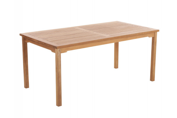 Teak havebord i massiv kerne teaktræ. Med hul til parasollen midt i bordet.Â
