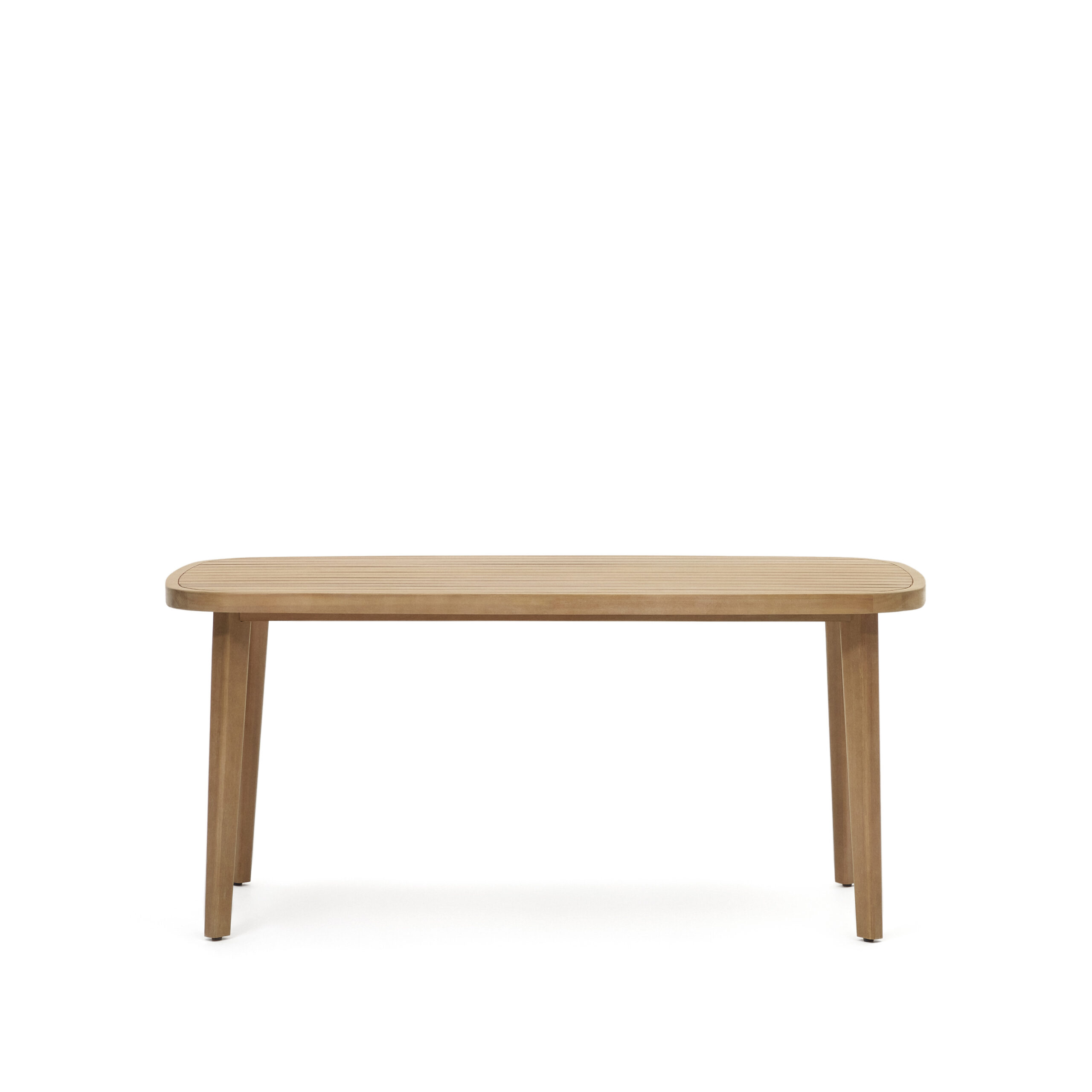 Afrundede former er i stil: Opret din udendørs spiseplads med Maset bordet fra Kave Home, hvor alle har et sted at spise. Alsidighed er dens stærke side, den er lavet af massivt eukalyptustræ og kombineres med alle typer atmosfærer og stilarter.