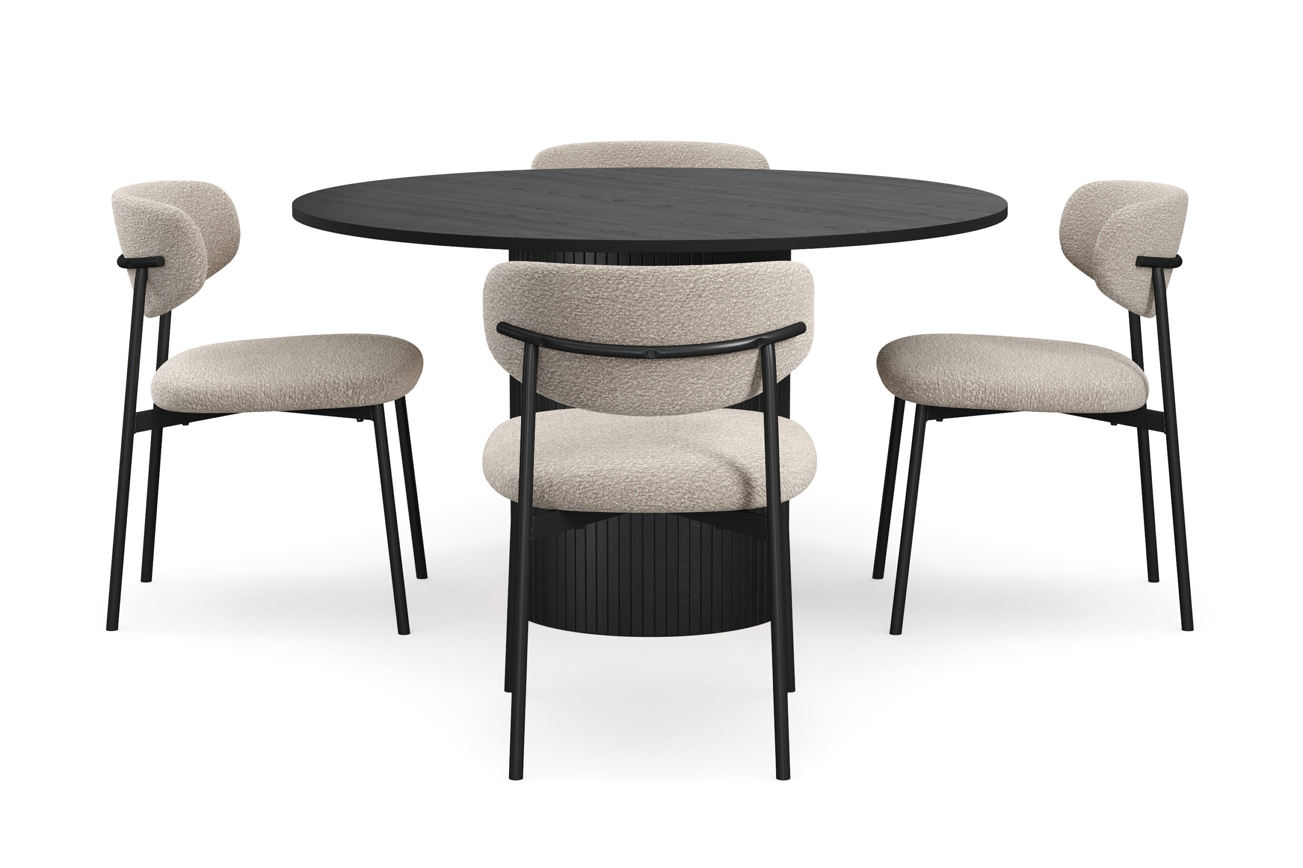 Kopparbo Rundt Spisebord 130 cm med 4 Lucy Spisestole – Sort træ / Greige Bouclé / Metalben Sort