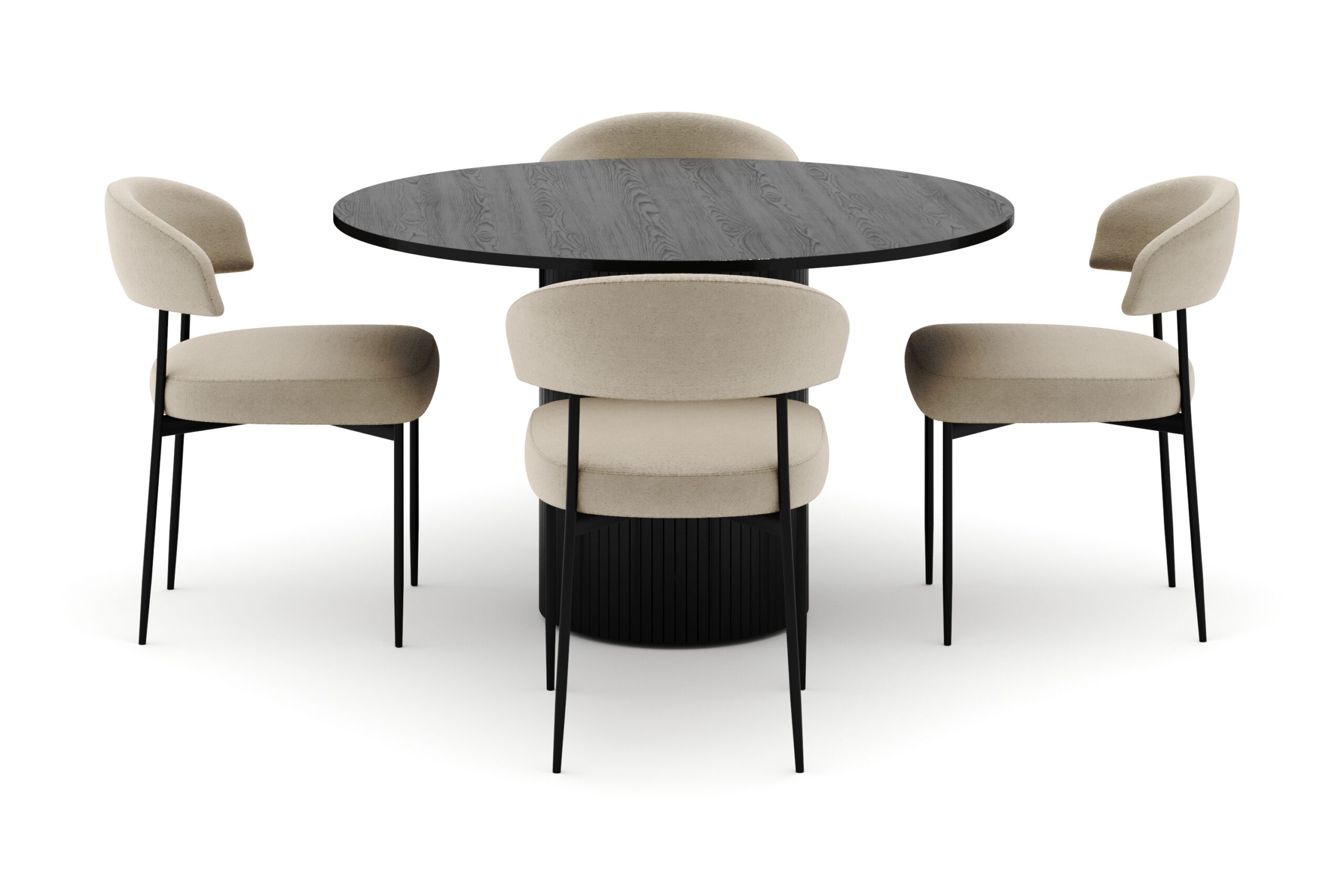 Kopparbo Rundt Spisebord 130 cm med 4 Sawako Stole – Sort