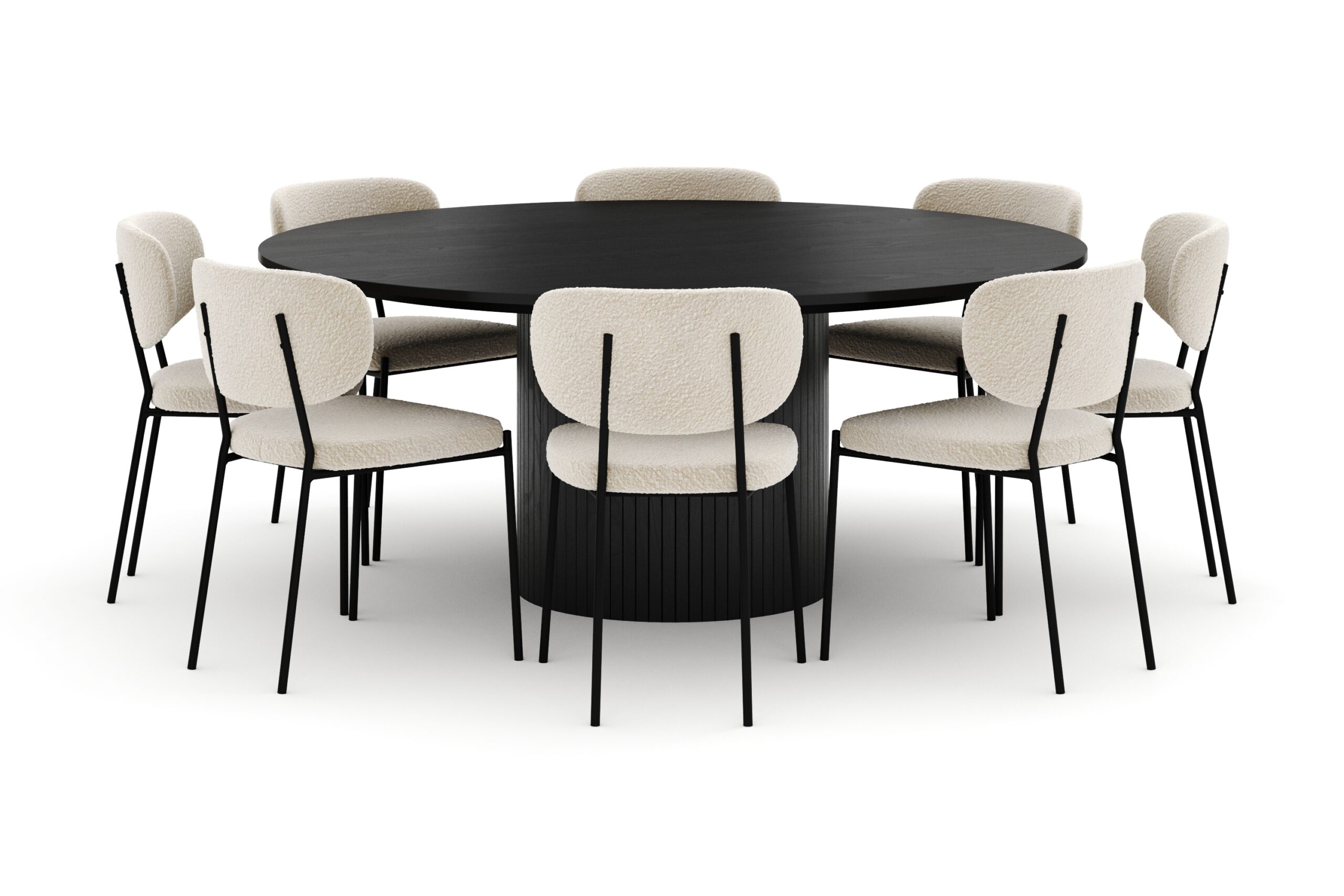 Kopparbo Rundt Stort Spisebord 180 cm med 8 Gemmiano Stole – Sort