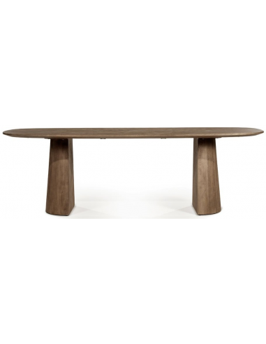 LUNE Ovalt spisebord udført i et moderne design, fremstillet i lysebrun lakeret mangotræ. Spisebordet måler 77 cm i højden og 240 x 105 cm i bredde og dybde.