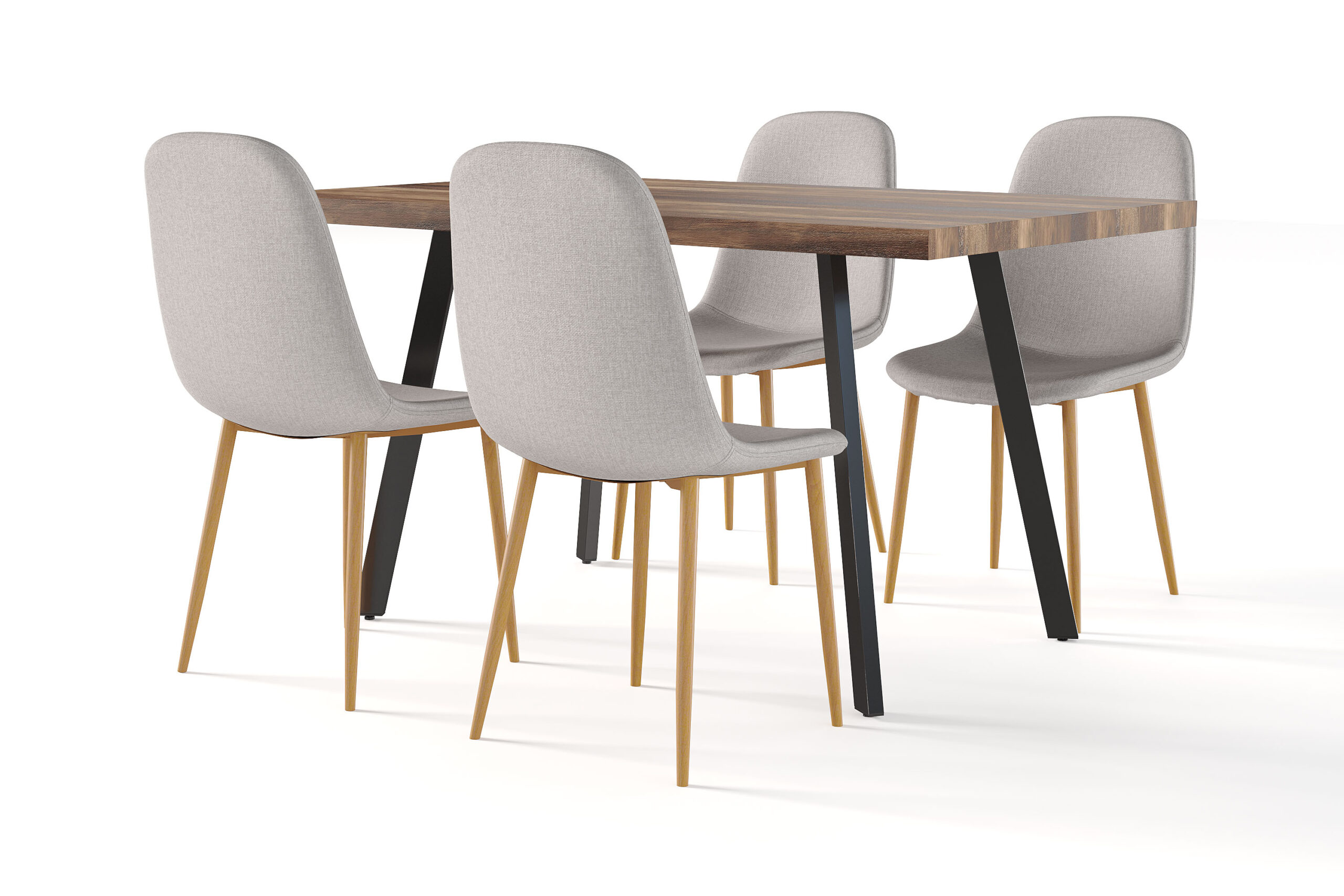 Marcelen Spisebord Udtræksbord med tillægsplade + 4 stk Nibe stol grå med egetræben – Brun/Grå