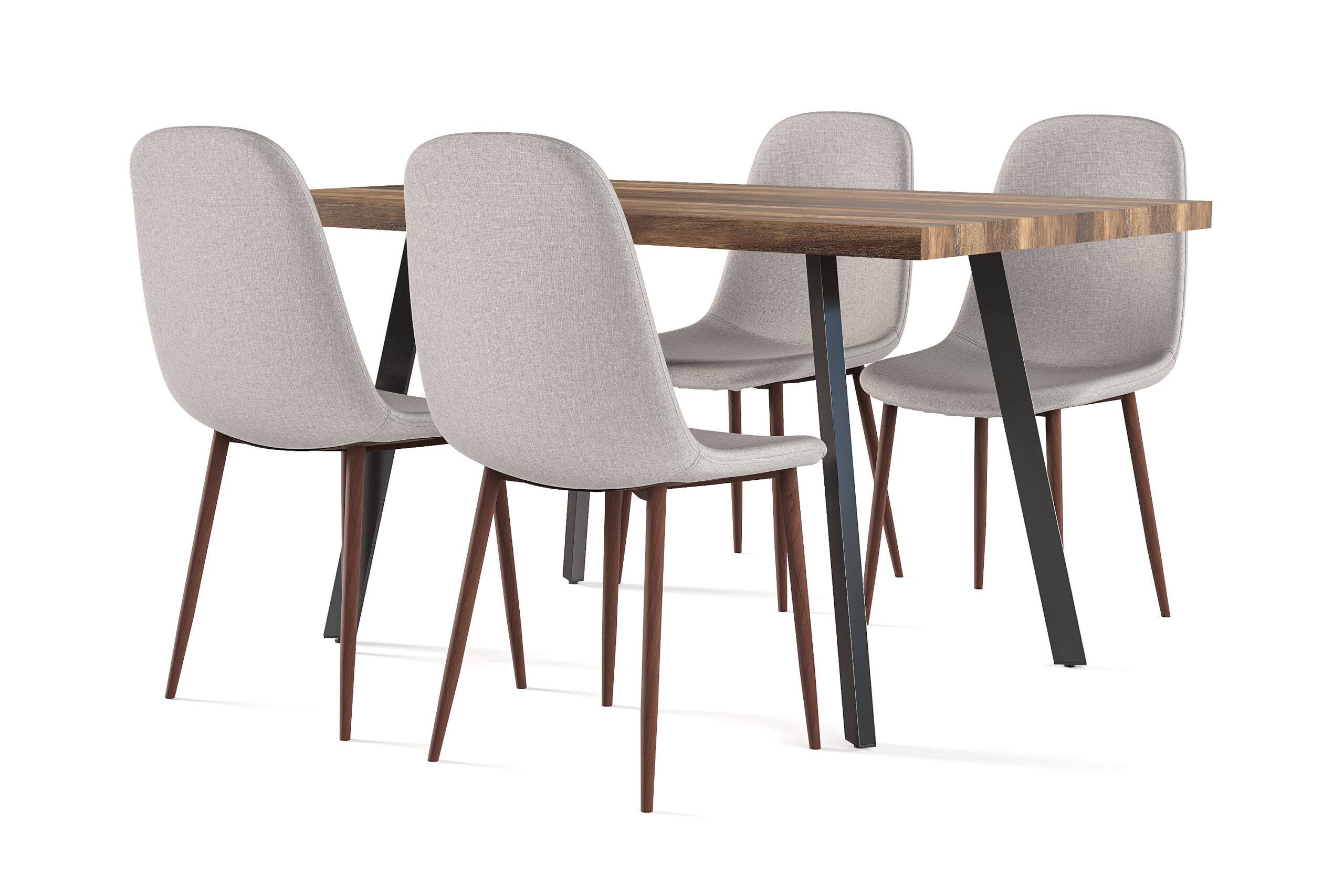 Marcelen Spisebord Udtræksbord med tillægsplade + 4 stk Nibe stol grå med valnøddeben – Brun/Grå