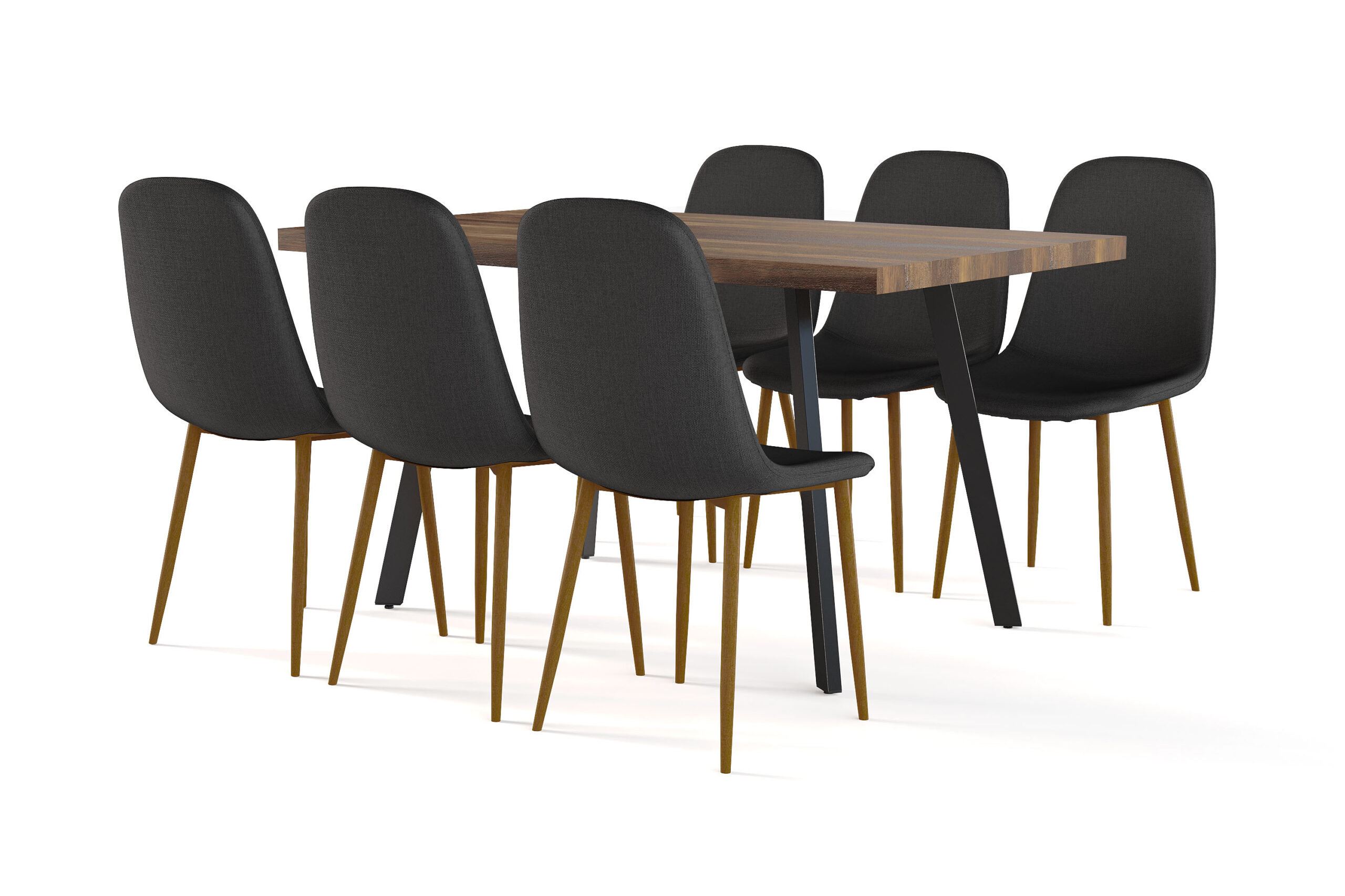 Marcelen Spisebord Udtræksbord med tillægsplade + 6 stk Nibe stol sort med egetræben – Brun/Sort