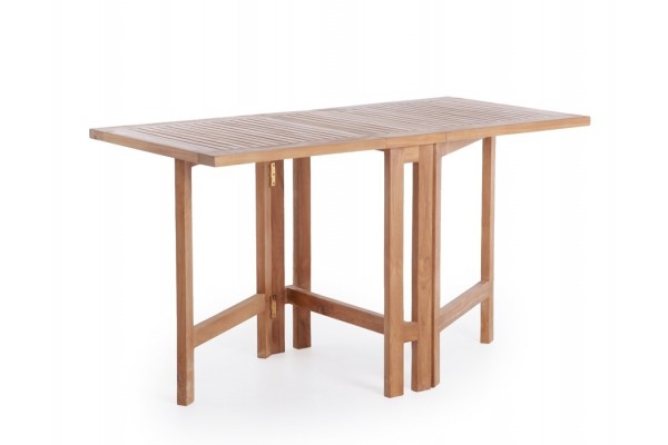 Bordet er fremstillet i kraftig, flot kerne teaktræ. Det kan klappes sammen på 2 sider så det fylder minimalt, når det ikke er i brug.Â