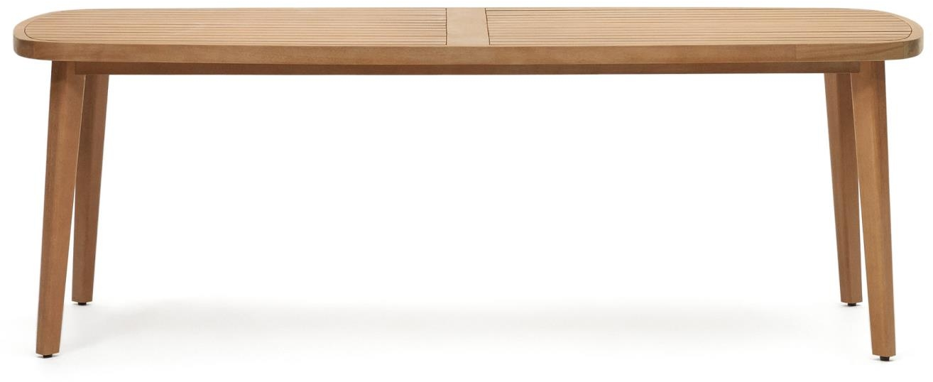Moderne afrundede former møder fleksibilitet og holdbarhed i Maset-bordet, det perfekte valg til at skabe dit udendørs spisested, hvor alle har et sted at spise. Dette bord er lavet af massivt eukalyptustræ, som er kendt for sin modstandsdygtighed over fo