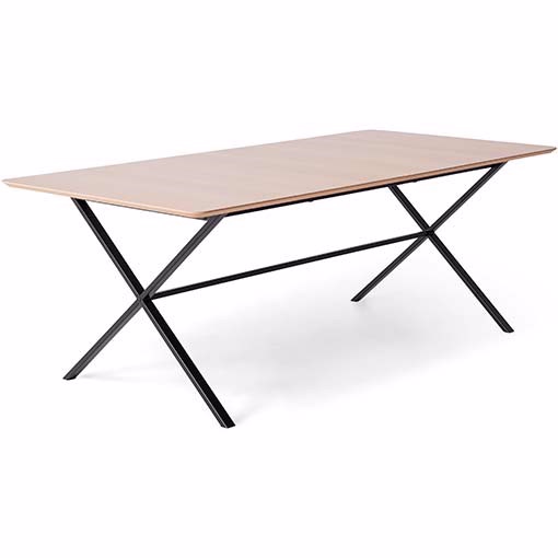 MEZA spisebord eg hvidpigmenteret finér Runde hjørner Dette spisebord fra Meza by Hammel er et smukt og klassisk bord. Spisebordet er designet med et flot krydsstel i pulverlakeret stål, som giver bordet et utrolig elegant design. Bordpladen på spiseborde