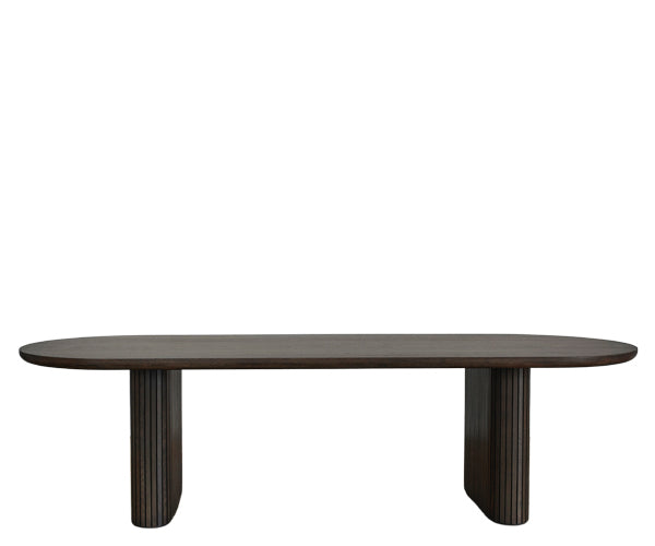 Mossroom Palisade spisebord, i ovalt 300x100cm. Palisade er et smukt plankebord af massiv egetræ. Bordet har vinklet kant der skaber en vis lethed og den centeret søjlefod bidrager til bordets skulpturelle udtryk. Bordet er håndlavet og et råt men dog elegant design, hvor runde former og solidt materiale finder det perfekte sammenspil. Mossroom Palisade Ovalt spisebord – 300×100 Leveres i flere størrelserLeveres i flere finish