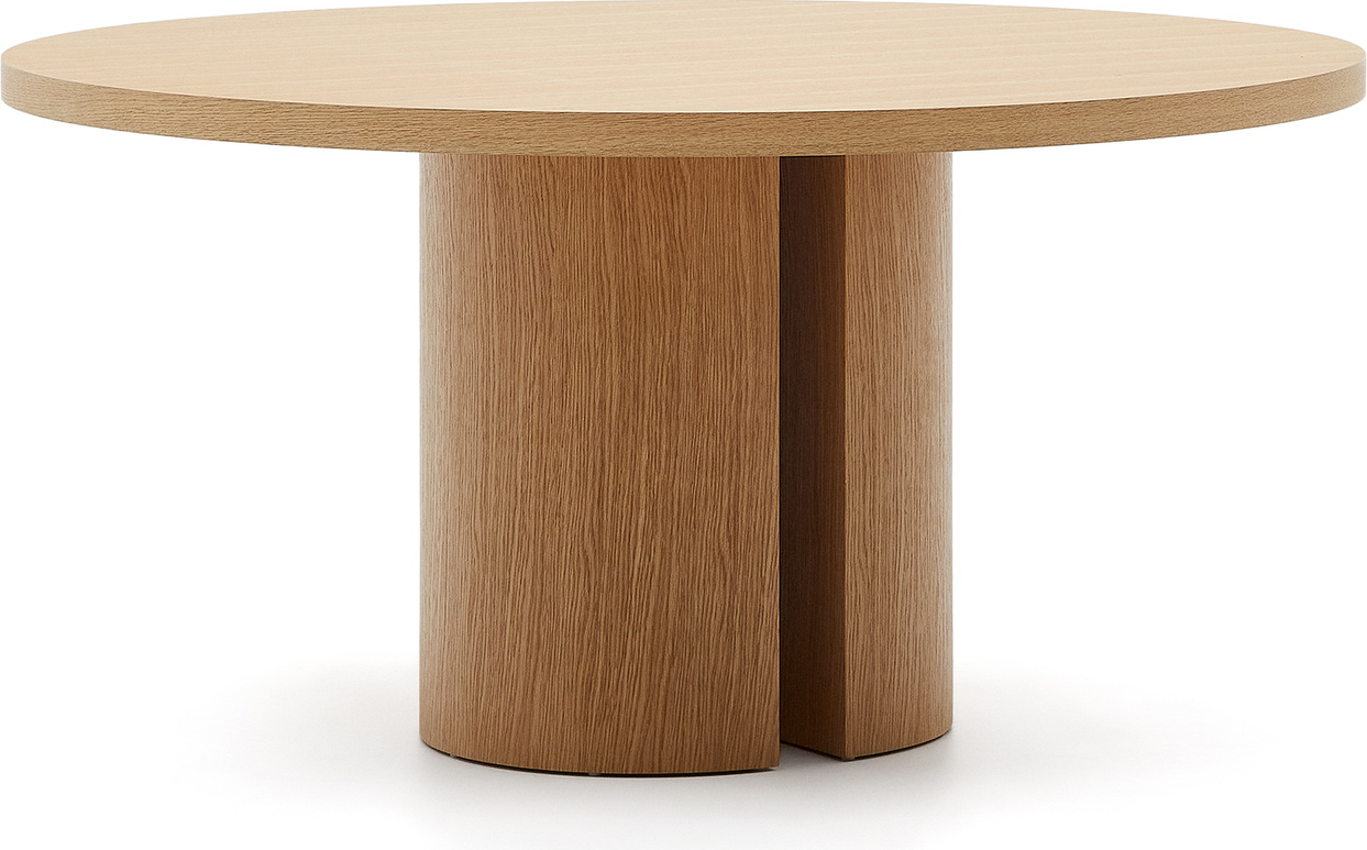 Det elegante Nealy spisebord fra Kave Home bringer en skandinavisk enkelhed ind i hjemmet med sit runde design og naturlige egetræsfiner. Dette spisebord har en overflade med en diameter på 150 cm, hvilket giver rigelig plads til hyggelige sammenkomster m