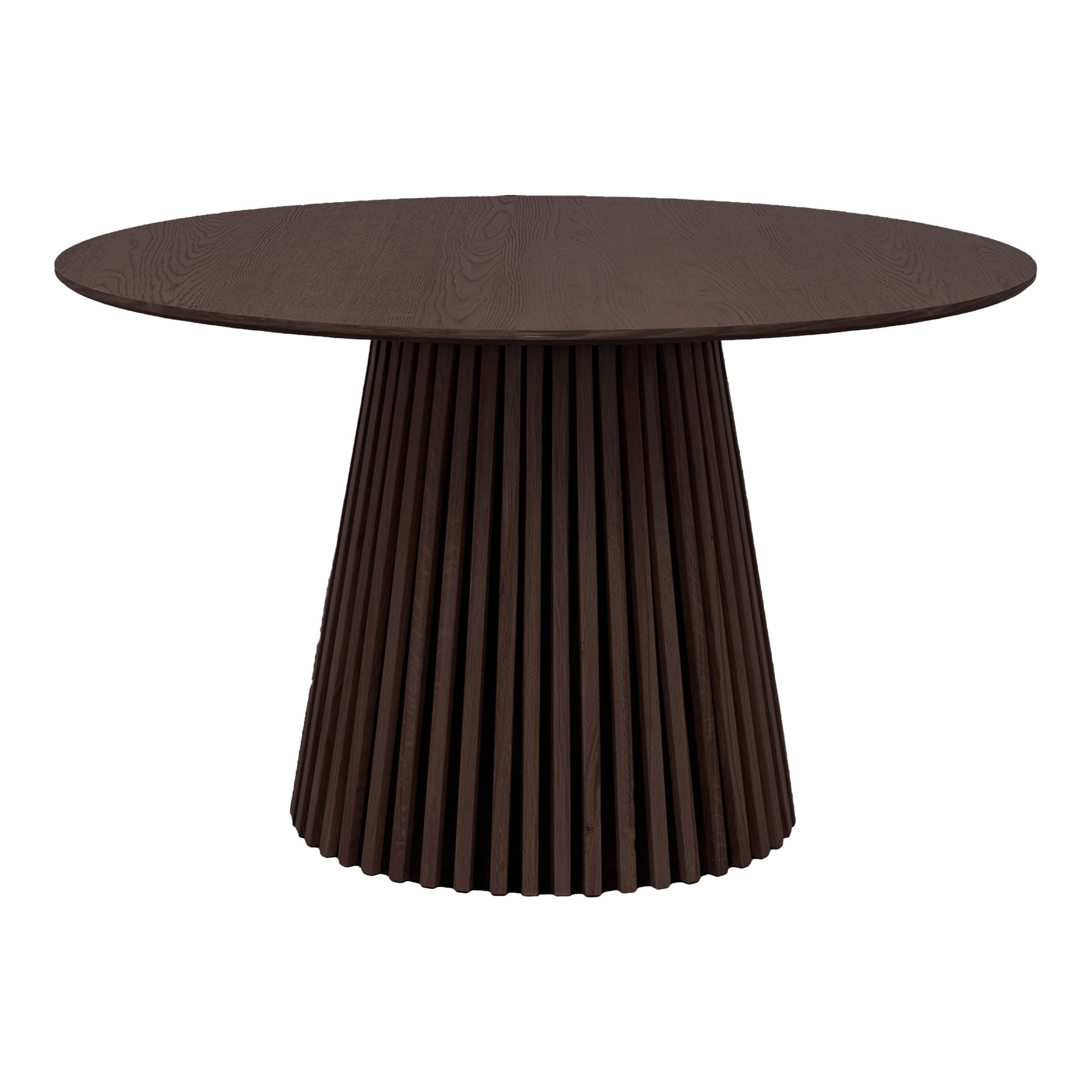 Osaka spisebordet i røget eg kombinerer elegance med varme og personlighed. Med en diameter på 120 cm er det et oplagt valg til mindre spisestuer eller køkkener, hvor der stadig skal være plads til hyggelige middage og gode snakke.
