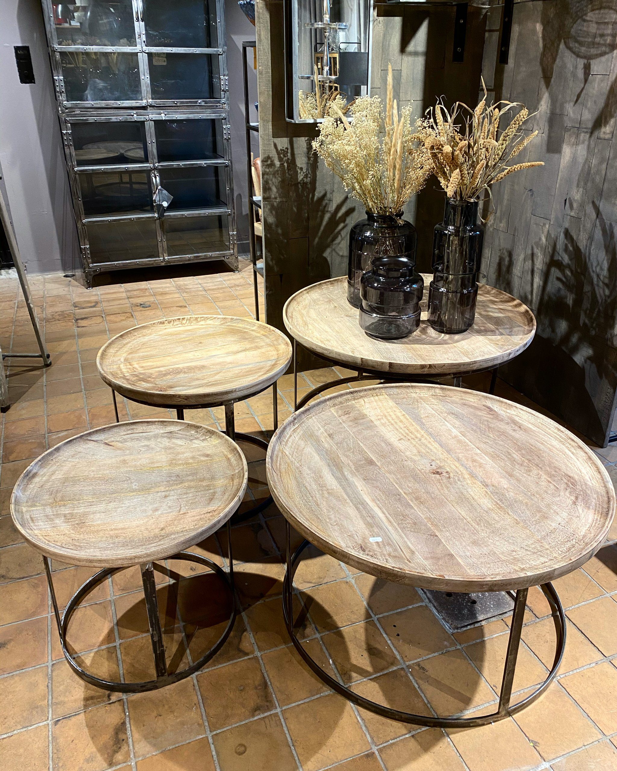 Et flot rundt sofabord med jernstel og bordplade af mangotræ, som passer ind i stort set alle hjem. Bordpladen varierer i mønster og farve.