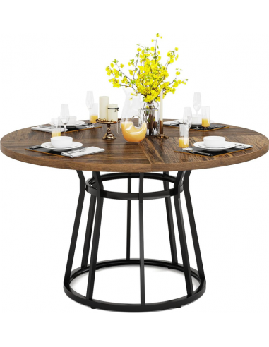 Rundt spisebord udført i et design af sortlakeret metal og mørkebrun møbelplade. Bordet måler 76 cm i højden og 120 cm i diameter.