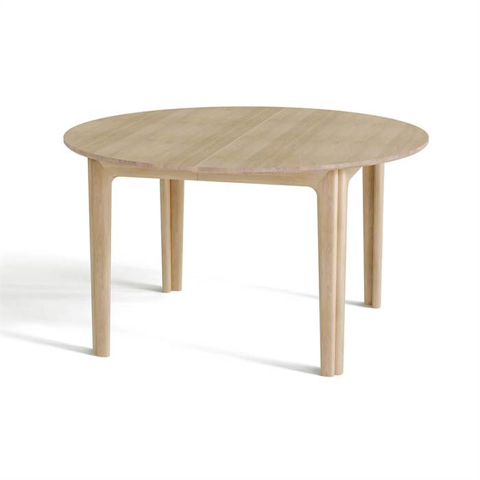 Skovby SM112 spisebord – rundt Skovbys runde spisebord med udtræk SM112 er en større version af det populære SM111 og måler Ø 130 cm. Bordet leveres med to matchende tillægsplader. Det er muligt at tilkøbe yderligere to tillægsplader, som gør, at bordet n