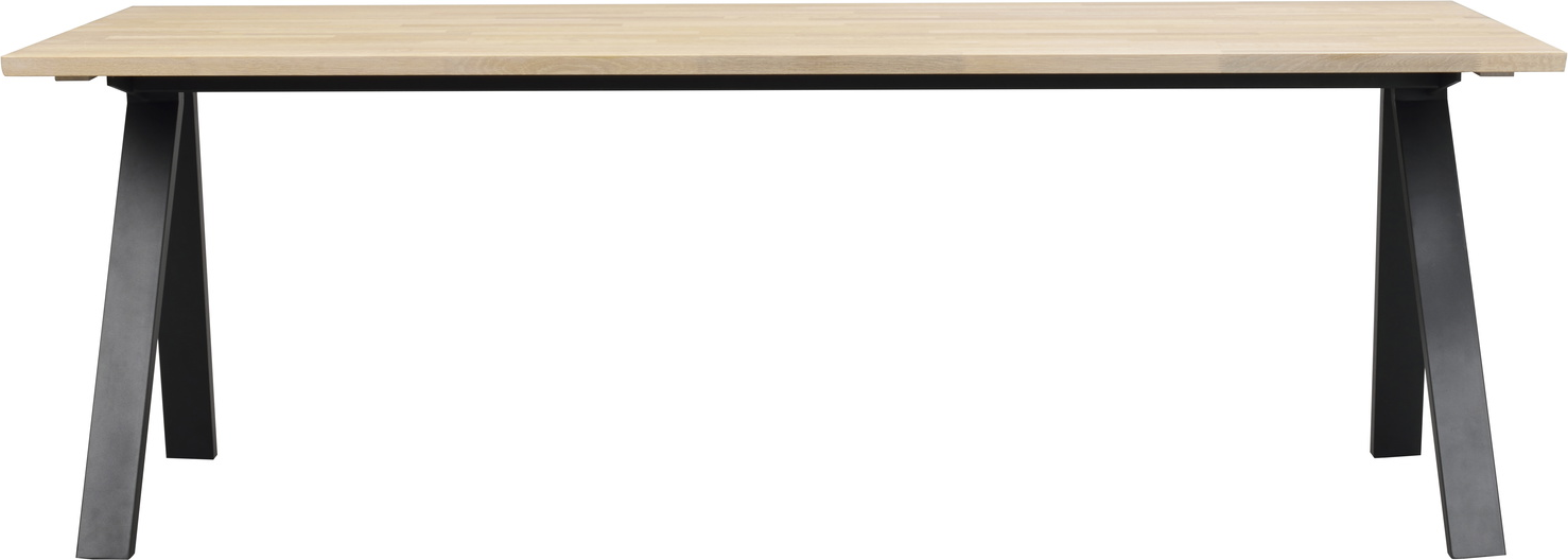 Rowico Carradale spisebordet i hvidkalket eg og sorte metalben forener rå elegance med praktisk funktionalitet og passer perfekt ind i den moderne familiebolig. Den massive fingersamlede egetræsoverflade er olieret med Rubio Monocoat, hvilket giver en sli