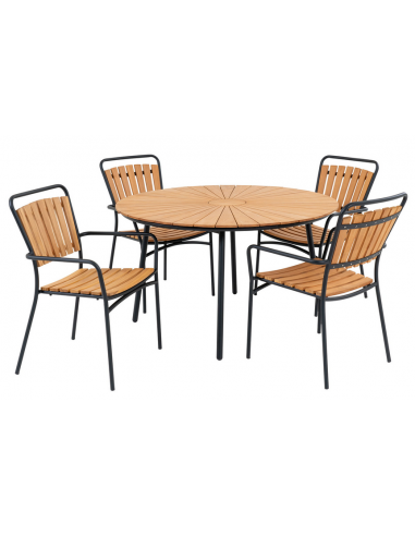 Sæt med 1 x rundt havebord og 4 x havestole, udført i et design af sortlakeret metal og olieret teaktræ.
