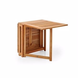 Super praktisk altan bord i flot teak træ. Bordet er 70 cm bredt og 146 cm når begge plader er slået op.