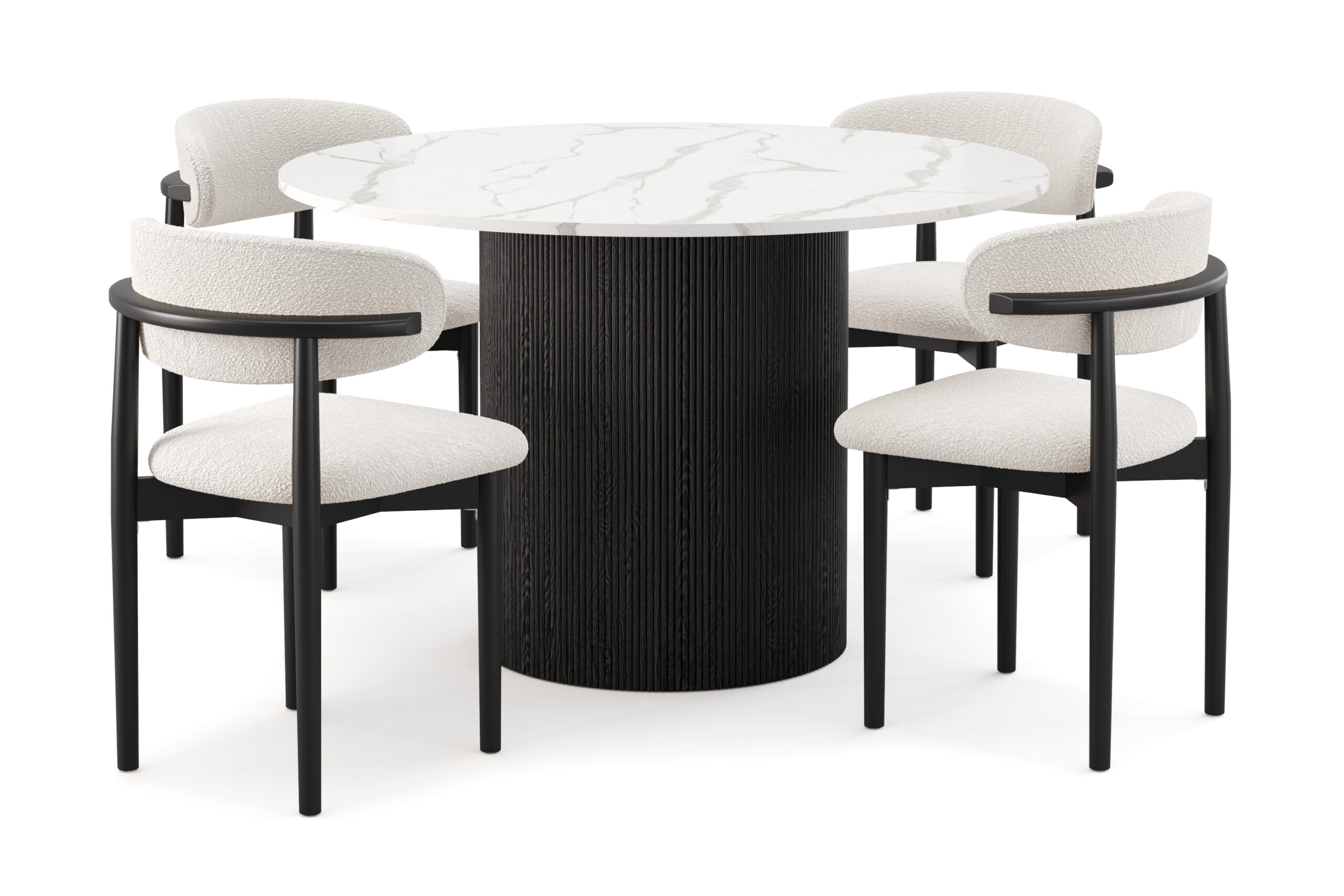 Uppveda Spisebord 120 cm Rund med 4 stk Jaiveer Matstkolar – Sort/Hvid