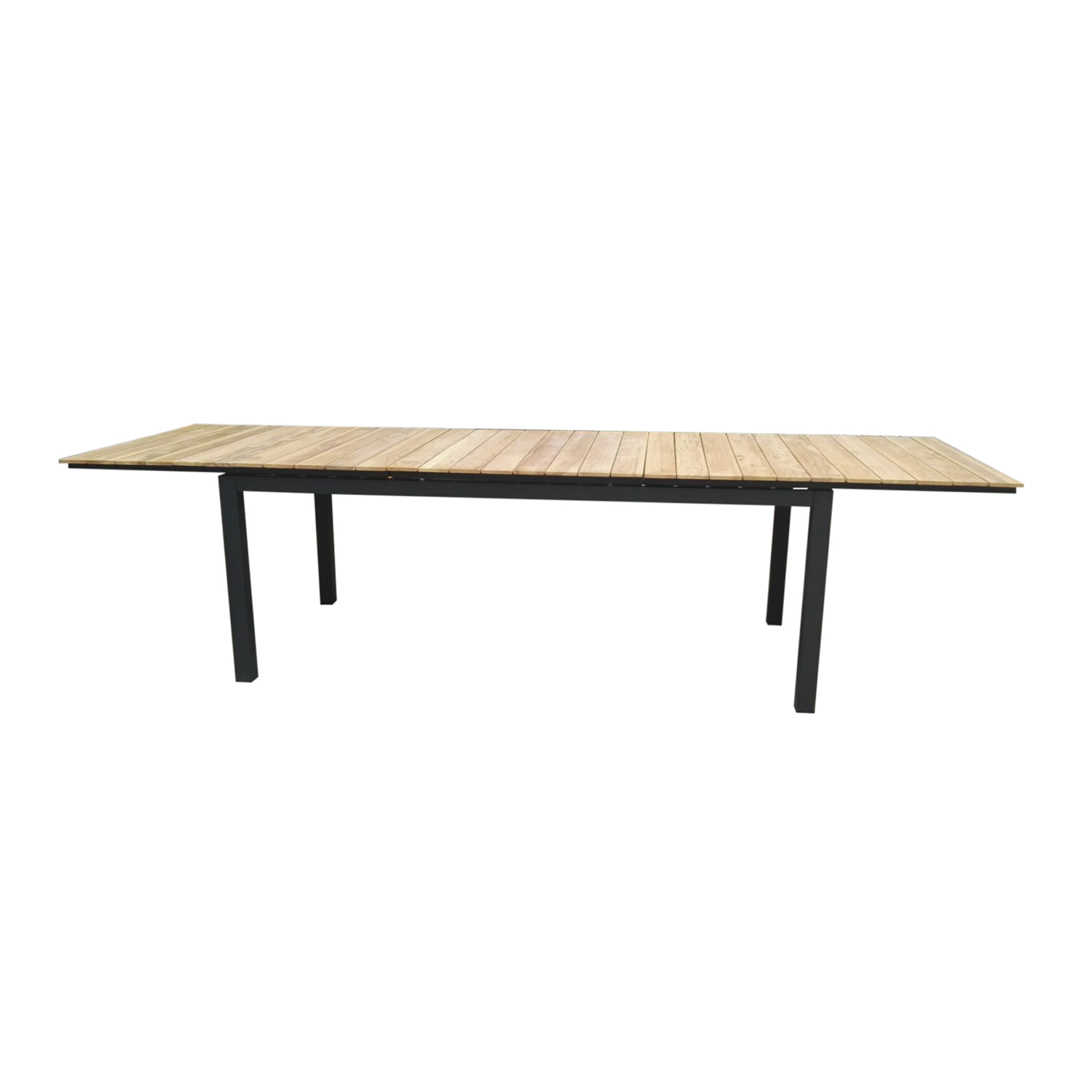 Fint, flot og stilfuldt rektangulært Mexico havebord med udtræk fra Venture Design. Havebordet er lavet af natur teaktræ og sort aluminium.Se flere haveborde i teaktræ her.Â