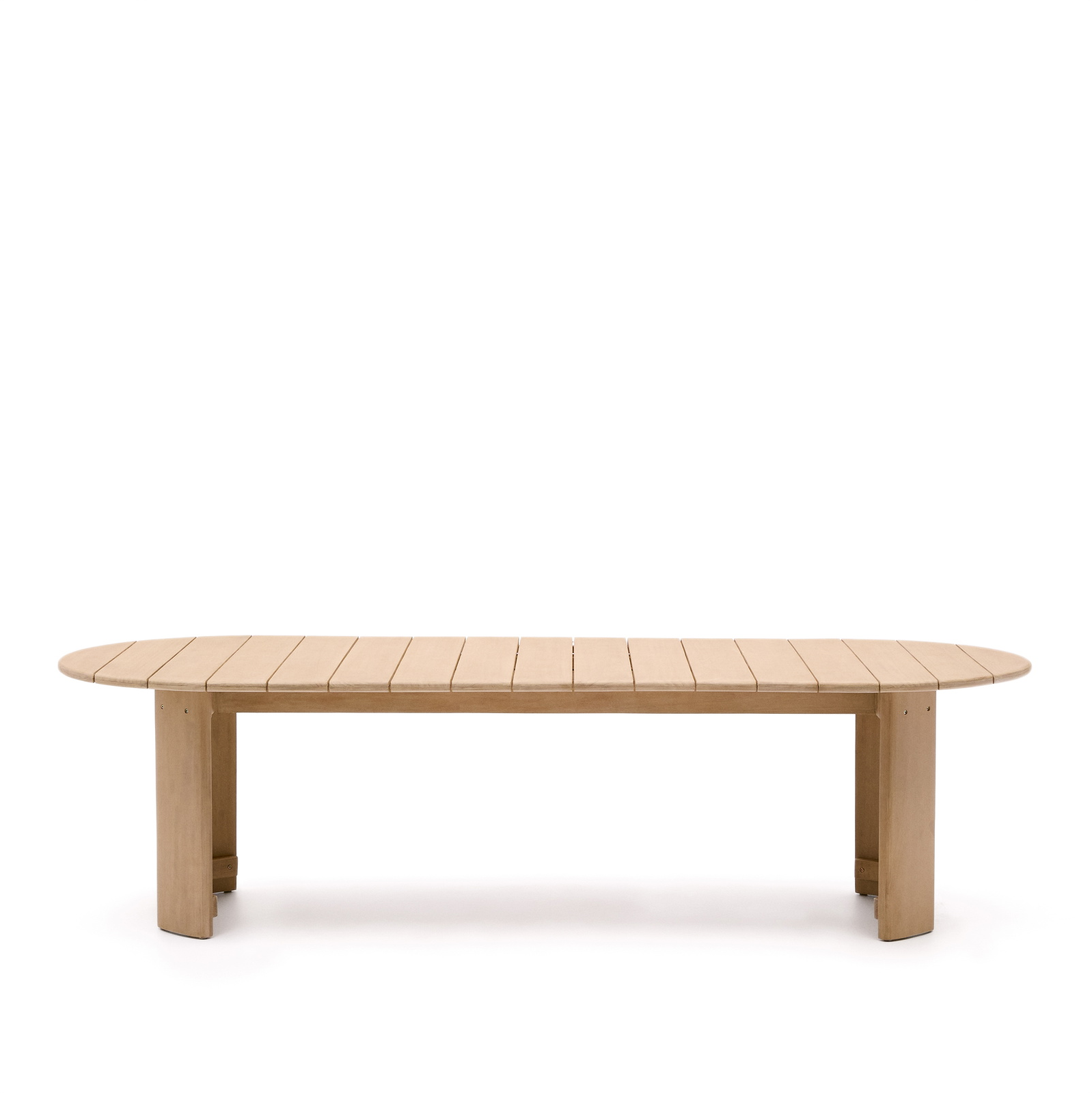 Kave Home´s Xoriguer bord er en imponerende tilføjelse til enhver bolig med sin elegante konstruktion i massivt eucalyptus træ. Dette ovale udendørs bord, som måler 280 x 110 cm, fremstår både som et stilfuldt og funktionelt stykke møbel. Det er designet